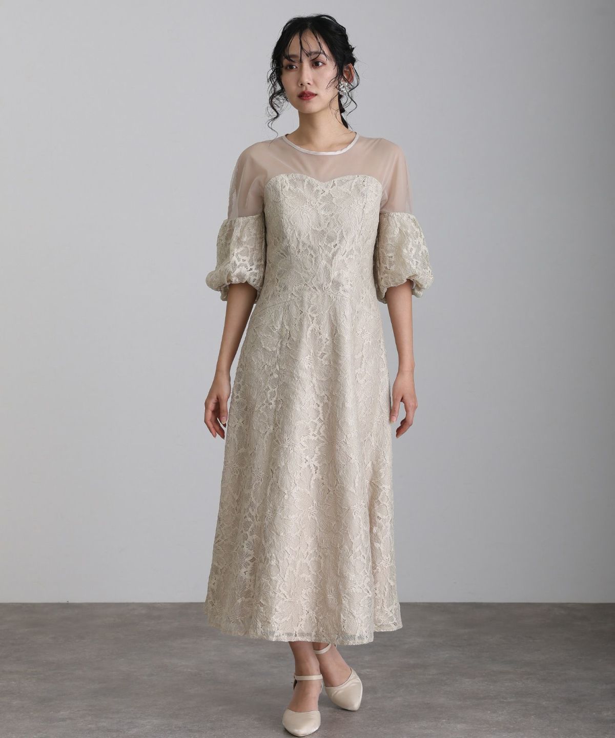 他の画像を見る ふんわりと膨らむ袖が甘さと気品を両立 キャンディスリーブ刺繍Aラインドレス 即日発送 販売価格 ¥ 22,000 税込 会員特別価格 ¥ 21,000 税込 カートに入れる お気に入りに登録する