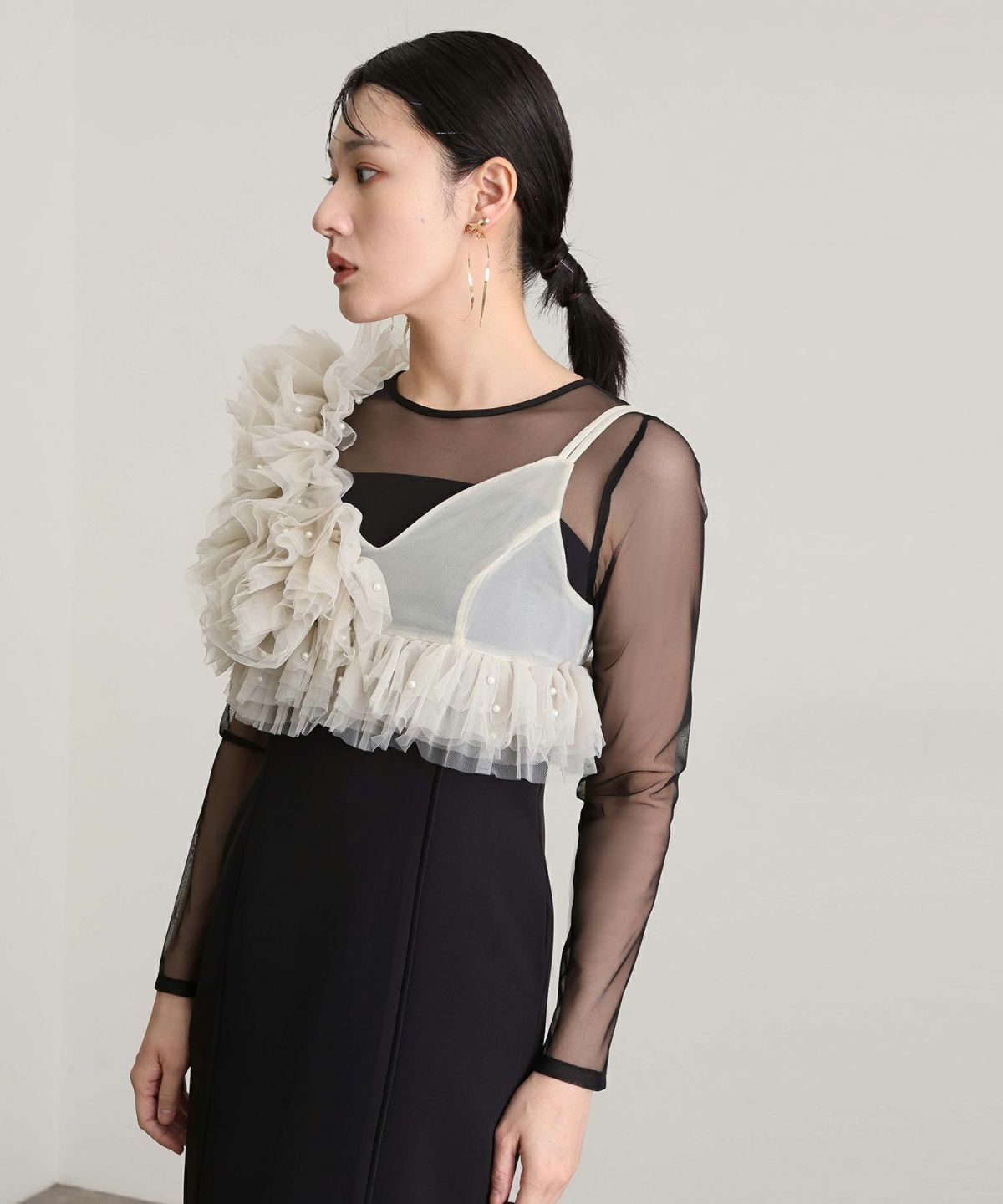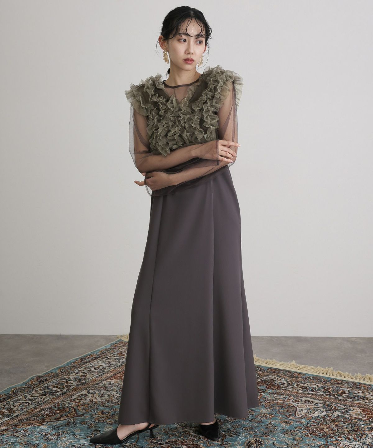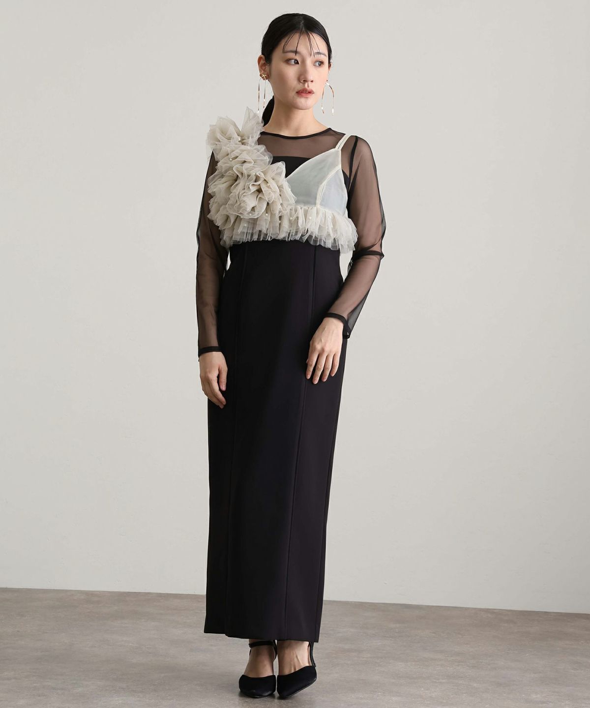 他の画像を見る ほどよいドレープが生み出す立体感あるシルエット シアーラッフルドレス 即日発送 販売価格 ¥ 19,800 税込 会員特別価格 ¥ 18,800 税込 カートに入れる お気に入りに登録する