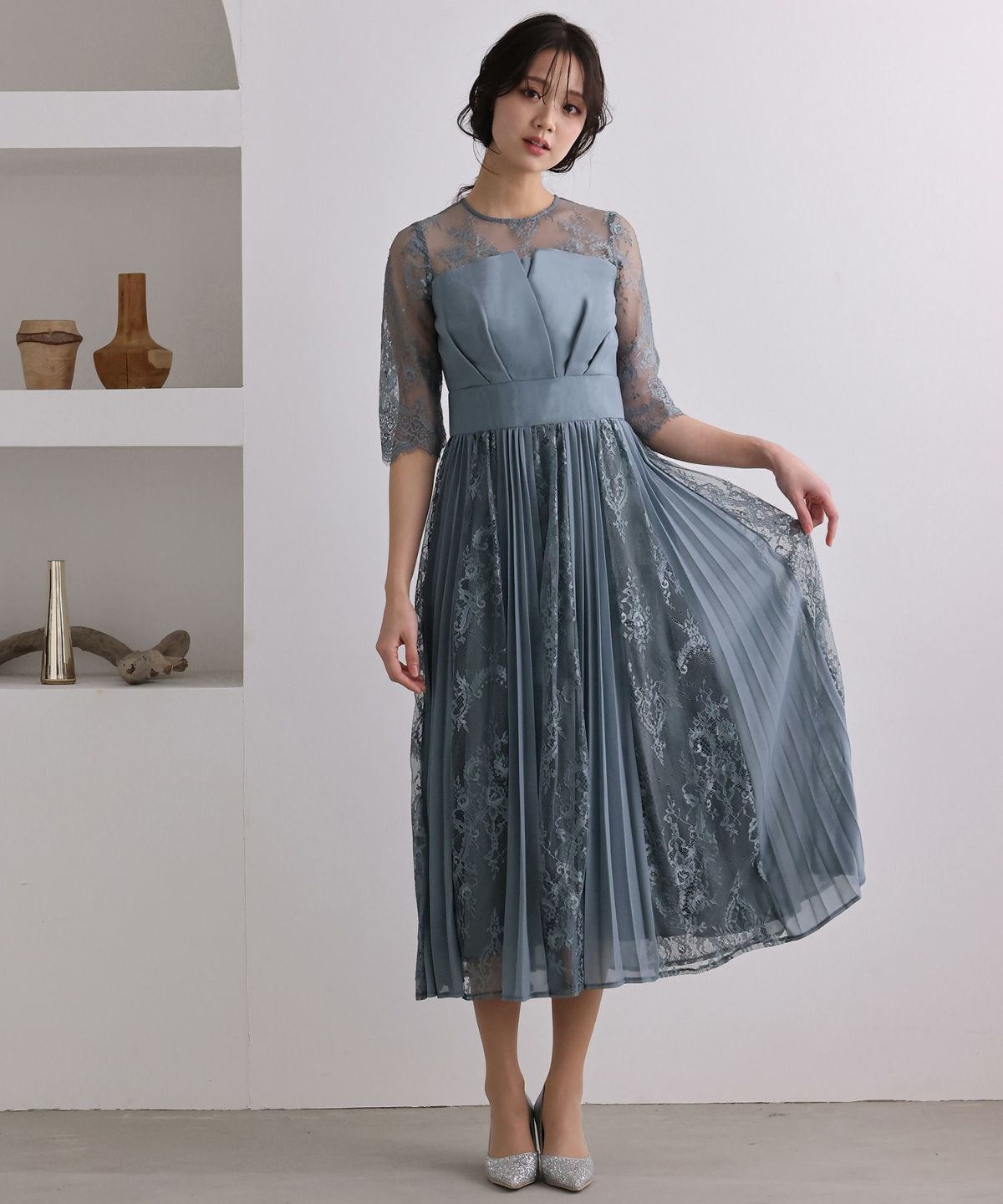 他の画像を見る トレンドのレースとプリーツで華やかに レース&プリーツロングドレス 即日発送 大きいサイズ 販売価格 ¥ 16,300 税込 会員特別価格 ¥ 15,300 税込 詳細を見る お気に入りに登録する