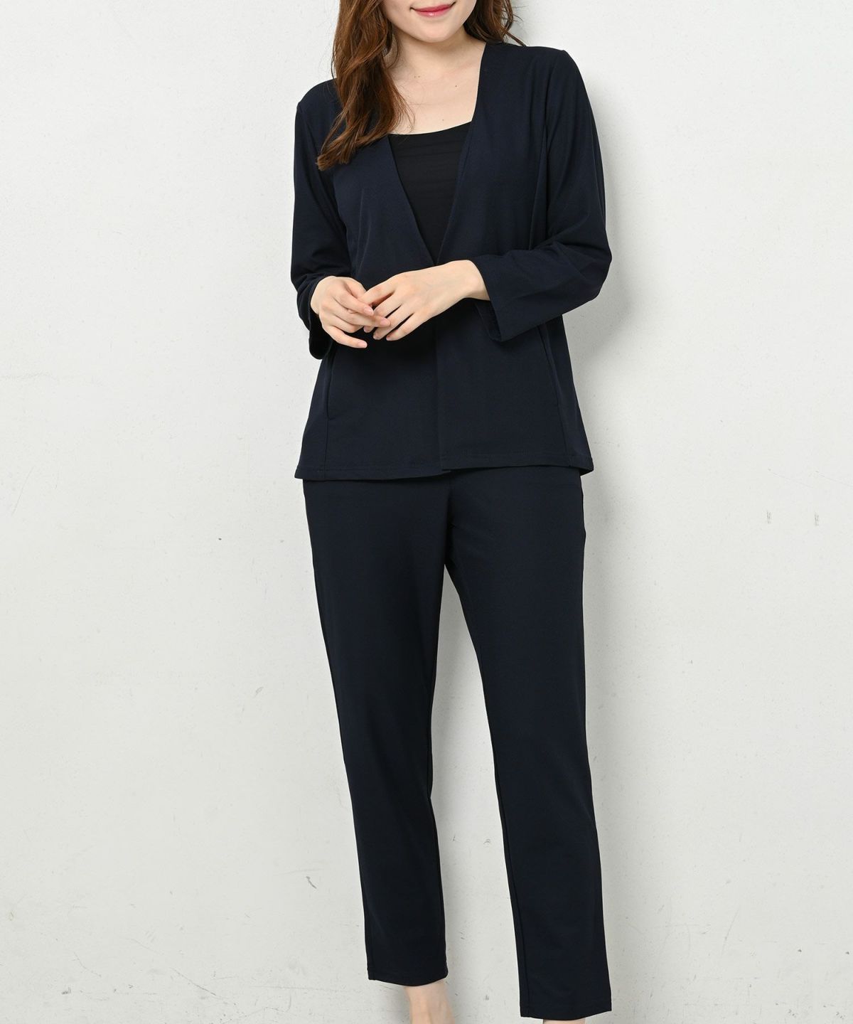 他の画像を見る ノーカラーでスッキリとした印象に クリートレディース上下セットスーツ 大きいサイズ 1~3営業日以内発送 定価 ¥ 13,800 販売価格 ¥ 10,350 税込 カートに入れる お気に入りに登録する