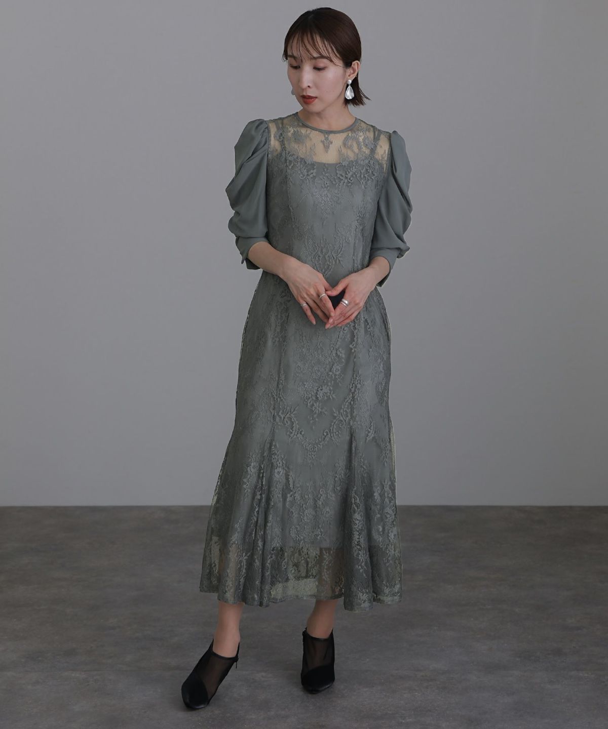 他の画像を見る ボリューム袖とレースの切り替えが可愛い シフォンスリーブ切替レースマーメイドワンピース 即日発送 SALE 定価 ¥ 20,900 販売価格 ¥ 13,410 税込 カートに入れる お気に入りに登録する