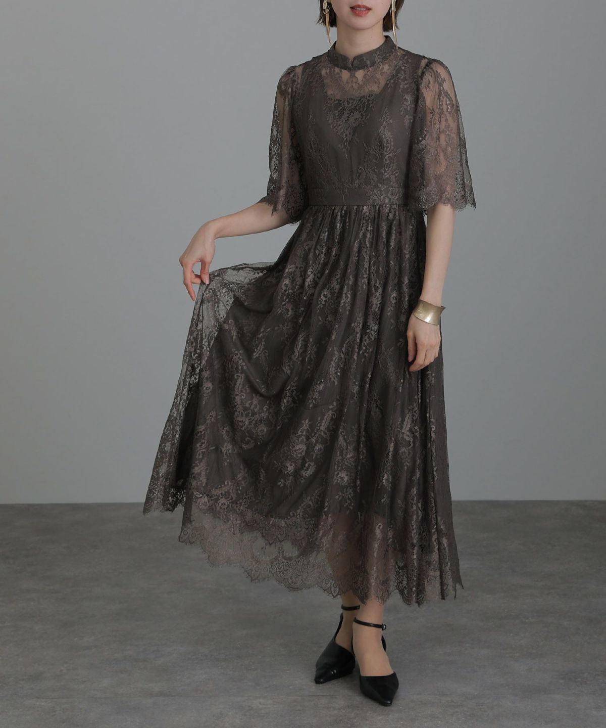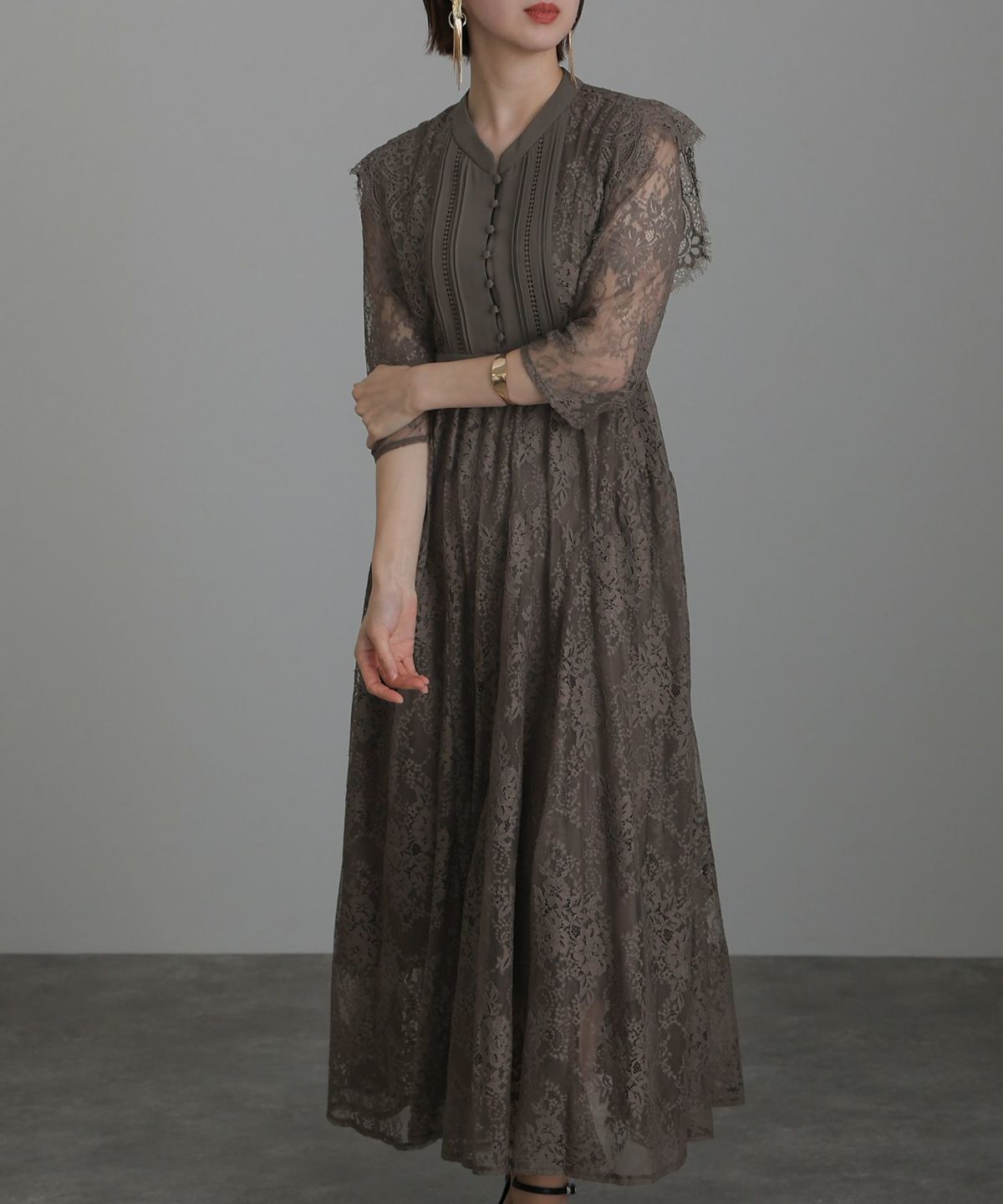 他の画像を見る クラシカルなデザインが上品なレースワンピース フロントピンタックスタンドカラーワンピース 即日発送 SALE 定価 ¥ 22,000 販売価格 ¥ 11,250 税込 カートに入れる お気に入りに登録する