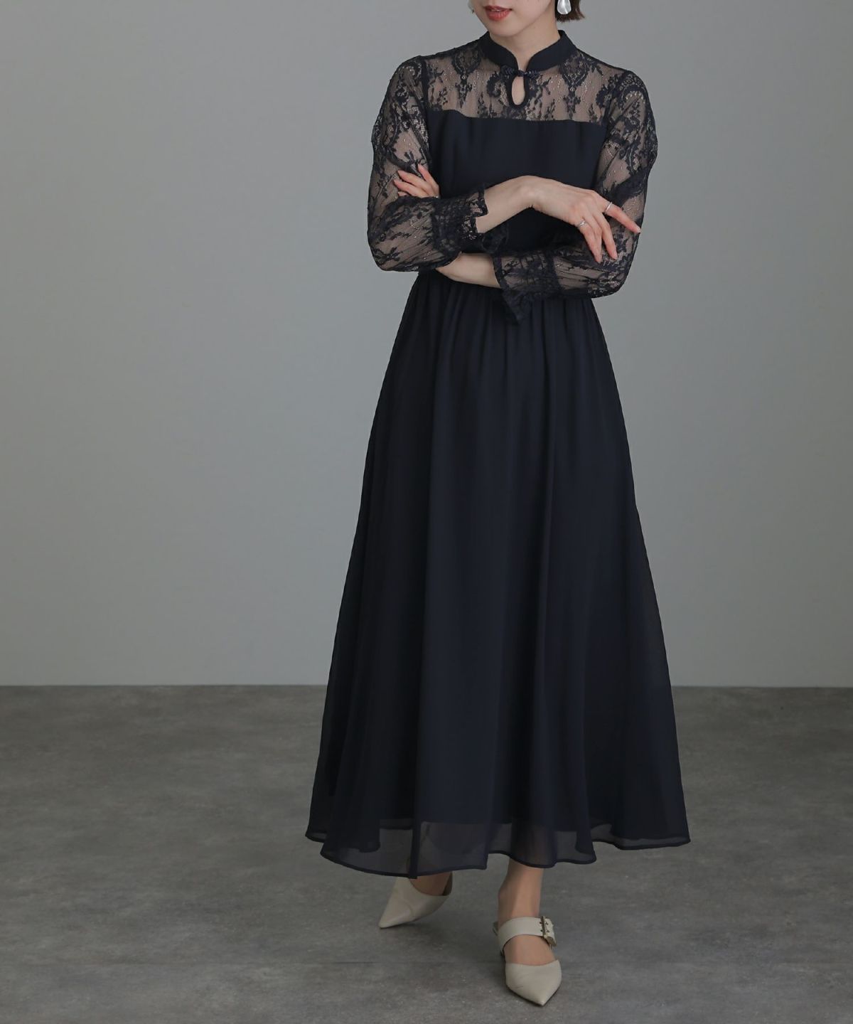 他の画像を見る 甘くなり過ぎないエレガントなデザイン チャイナ風レース切替ワンピース SALE 1~3営業日以内発送 定価 ¥ 17,799 販売価格 ¥ 14,239 税込 カートに入れる お気に入りに登録する