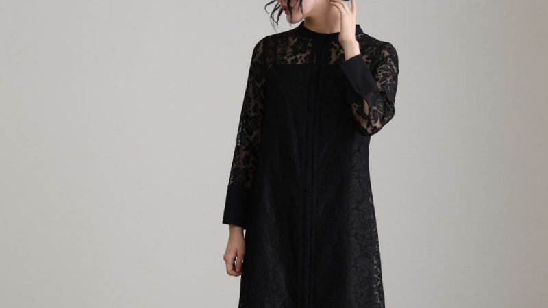 エレガントな総柄レースのドレスで、袖や裾がスカラップになっておりとても上品。